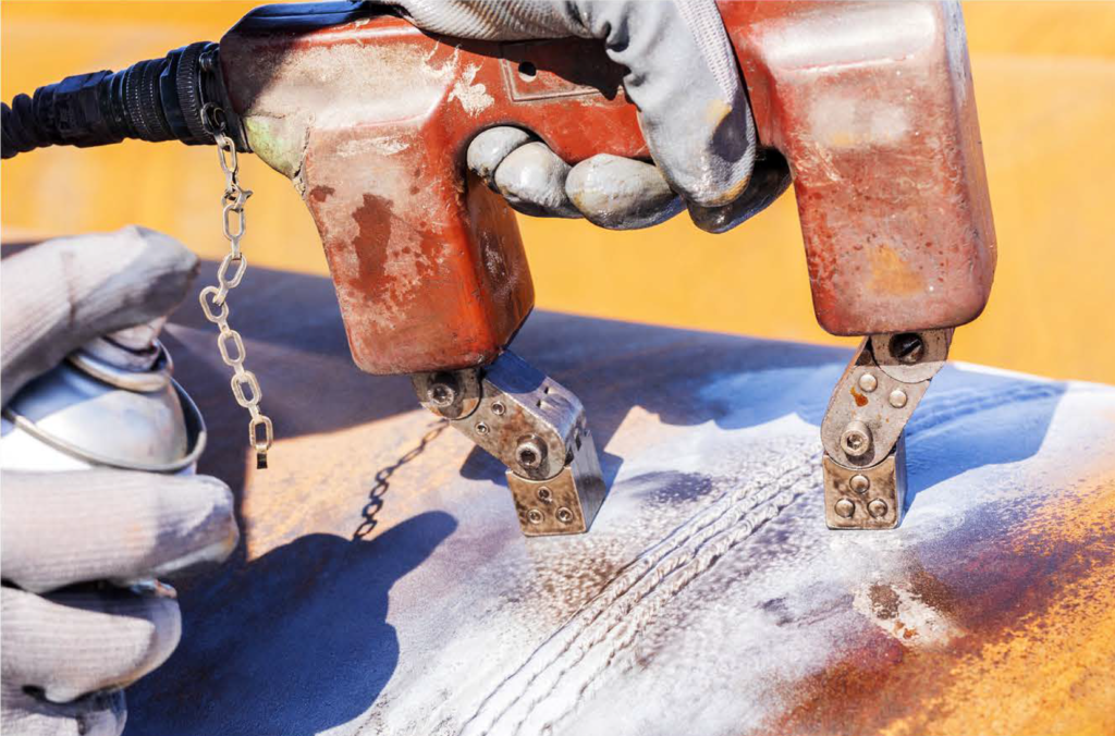 is a non-destructive testing (NDT) technique used to find surface and subsurface cracks in ferromagnetic metals like iron, nickel, and cobalt. An NDT technique known as magnetic panicle testing is quick, easy, cheap, and very potable for finding small or shallow surface fractures in ferromagnetic pipes and fixtures. It is a flexible evaluation method that may be used to find flaws on test specimens of a wide range of sizes and shapes. Using an electromagnetic/permanent yoke, coils, and other devices, Big M offers a range of magnetic particle testing services, including dry powder, wet visible, wet fluorescent, and others. At Big M, we make sure that all of our technicians are qualified and cenified in accordance with the highest international standards. According to ASTM, Big M conducts magnetic particle testing on both visible and fluorescent particles in accordance with ASTM E1444, ASTM E125, ASTM E709, ASME BPVC Section V-Article 7, AWS D1.1, BS 6072, EN 1290, BS EN ISO 17638, BS 1369, BS EN 10228-1 and similar national and international standards.